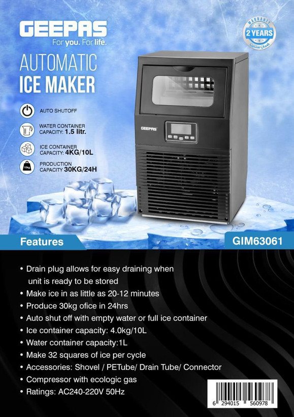 یخساز ۳۰ کیلویی صنعتی جیپاس مدل Geepas Gim63061