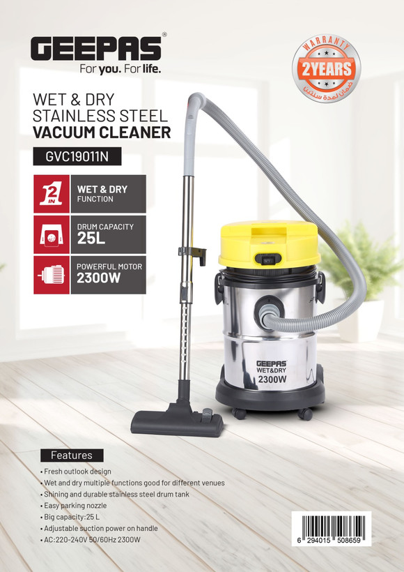 جاروبرقی سطلی آب و خاک جیپاس مدل GVC19011