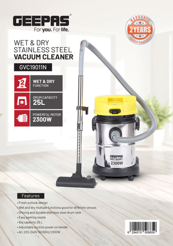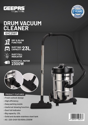 جارو برقی سطلی جیپاس مدل GVC2597 ظرفیت ۲۳ لیتر با قدرت ۲۳۰۰ وات